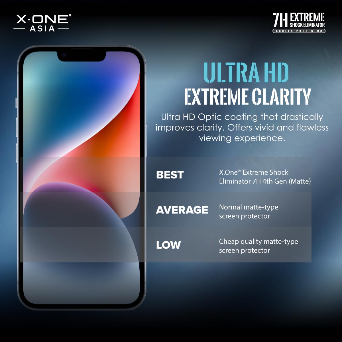 X.One® Extreme 7H 4th Gen: Our most advanced screen protector, combining Impact Fusion™ Technology with a flexible hybrid polymer offers excellent shock absorption. Experience a crystal-clear display without the risk of cracks.