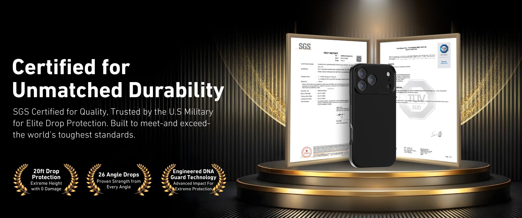 Introducing X.One Shock Dominator, minimalist design case with a leather matte feel finishing. Engineered with DNA Guard™ Technology, this case withstands drops from up to 20ft, rigorously tested and certified by TÜV and SGS.