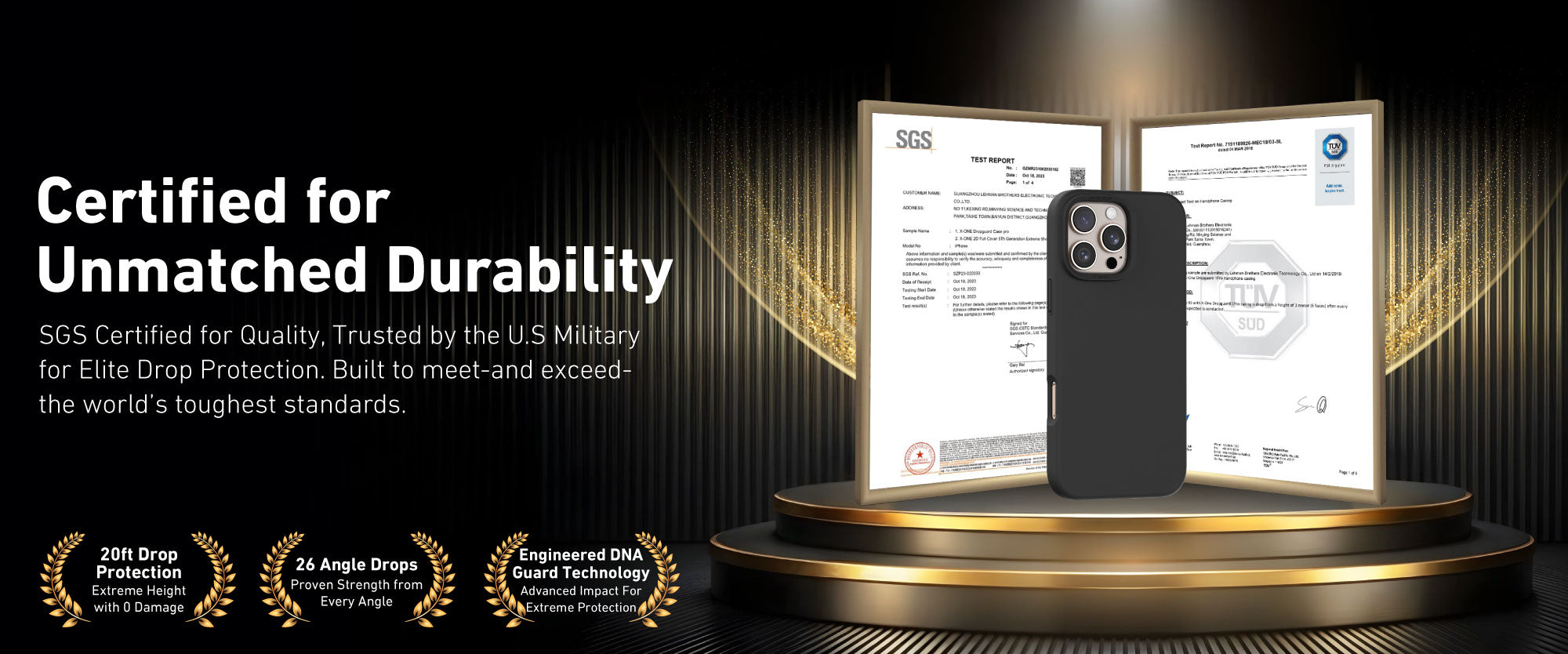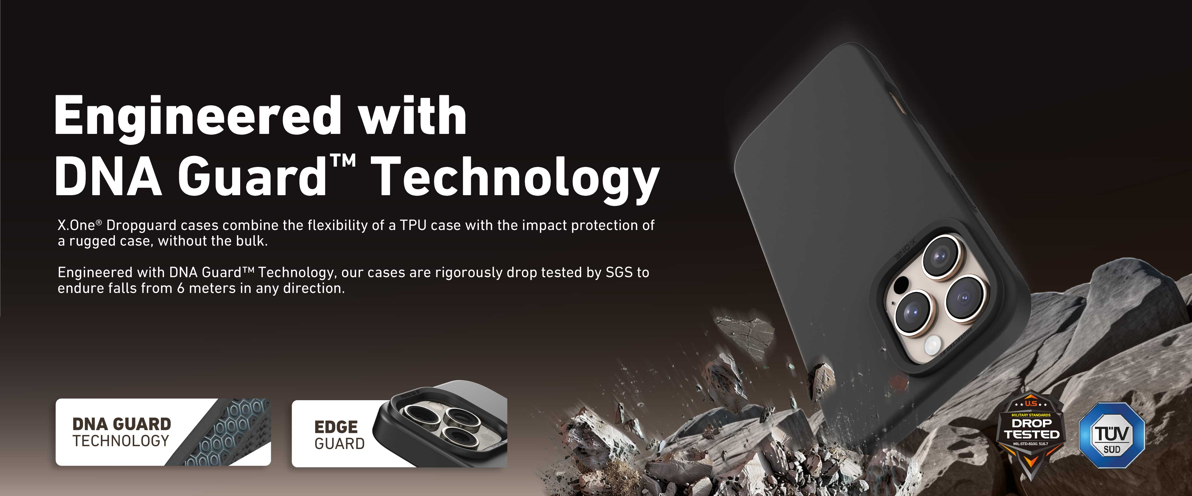 Introducing X.One Shock Dominator, minimalist design case with a leather matte feel finishing. Engineered with DNA Guard™ Technology, this case withstands drops from up to 20ft, rigorously tested and certified by TÜV and SGS.